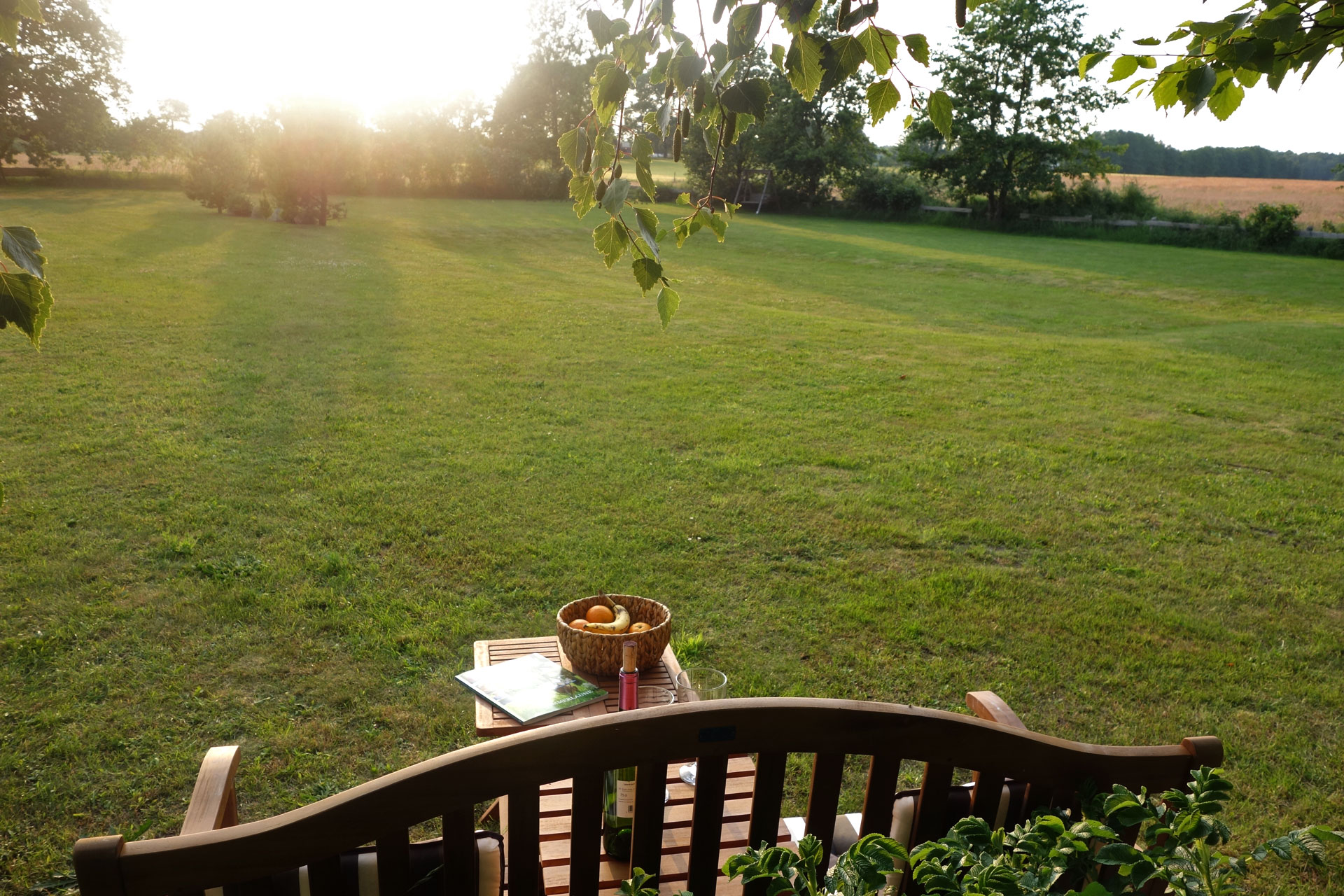 GartenbankZum Frühjahrsbeginn haben wir nördlich des Parkplatzes einen Gartensitzplatz eingerichtet, von dem man im Sommer einen schönen Blick in den Sonneuntergang hat. |