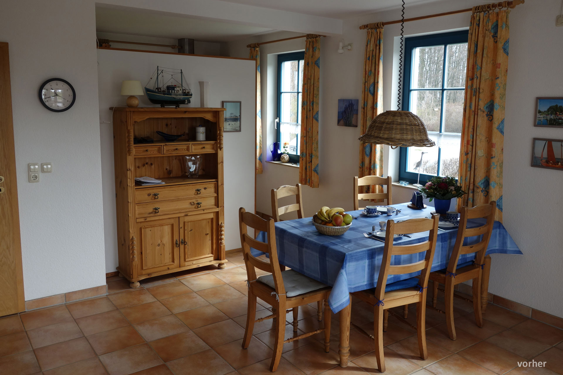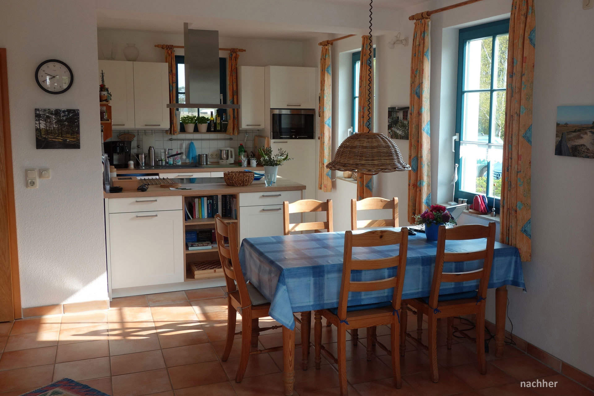 Offene KücheAls wir das Haus übernommen haben, war die Küche vom Wohnraum durch eine Holzwand getrennt. Im Februar 2014 haben wir die Küche zum Wohnraum hin geöffnet und komplett modernisiert. Details zur Küche finden Sie auf der Seite "Ausstattung".