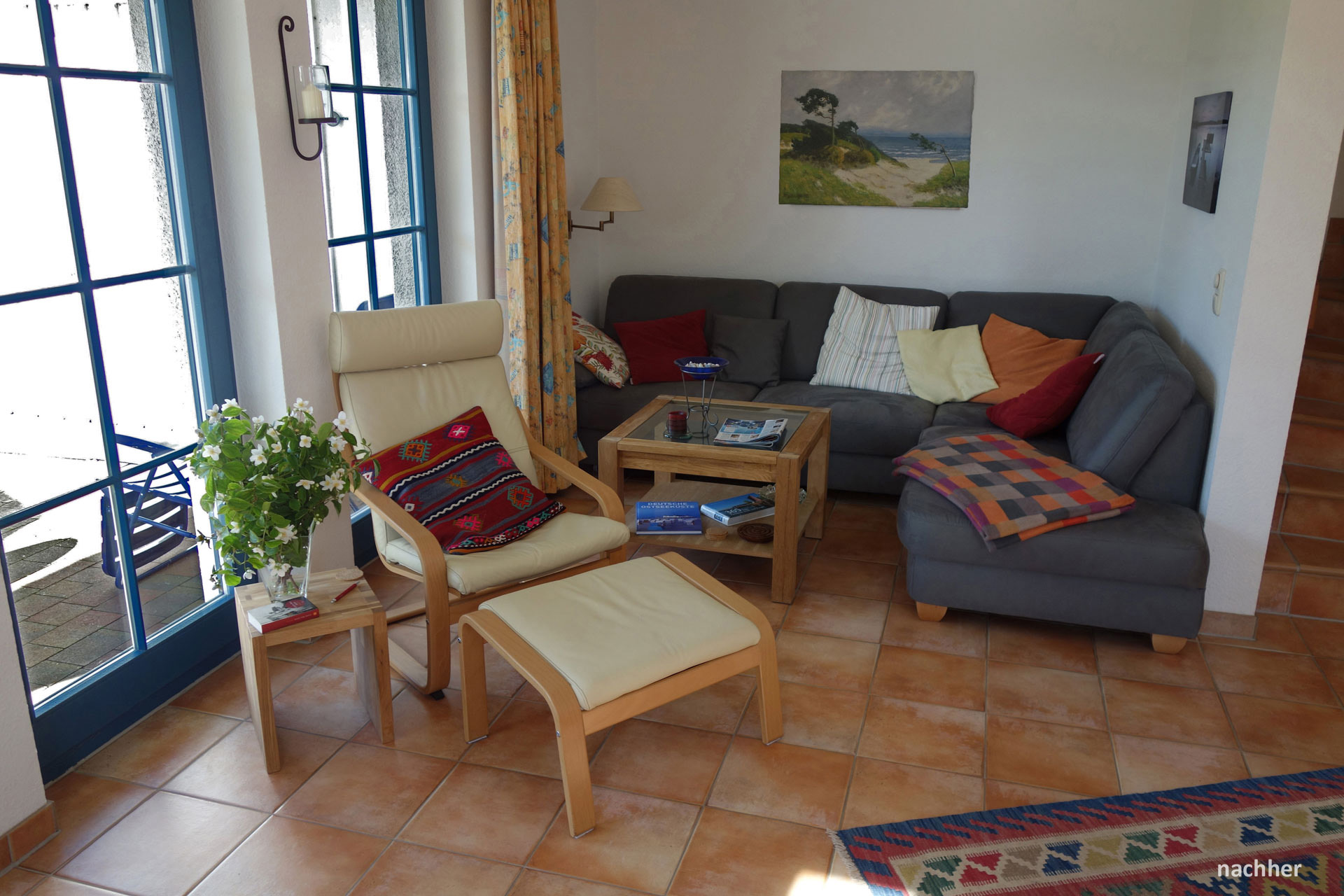 Umgestaltung im InnerenIm Frühjahr 2013 haben wir dann das Innere des Hauses Schritt für Schritt nach unserem eigenen Anspruch und Geschmack umgestaltet und neu eingerichtet: Eine neue Sitzecke mit bequemem Lesesessel und ein neuer großer Flachbild-Fernseher im Wohnzimmer; große Spiegel, Ablagestühle, rollbare Nachttische mit flexiblen Leselampen und elektrische Lattenroste für die Schlafzimmer; neue (dimmbare) Lampen, neue Bilder, Babyausstattung und vieles Andere mehr.