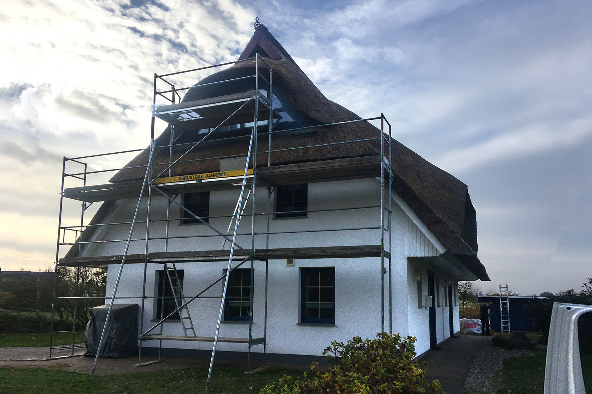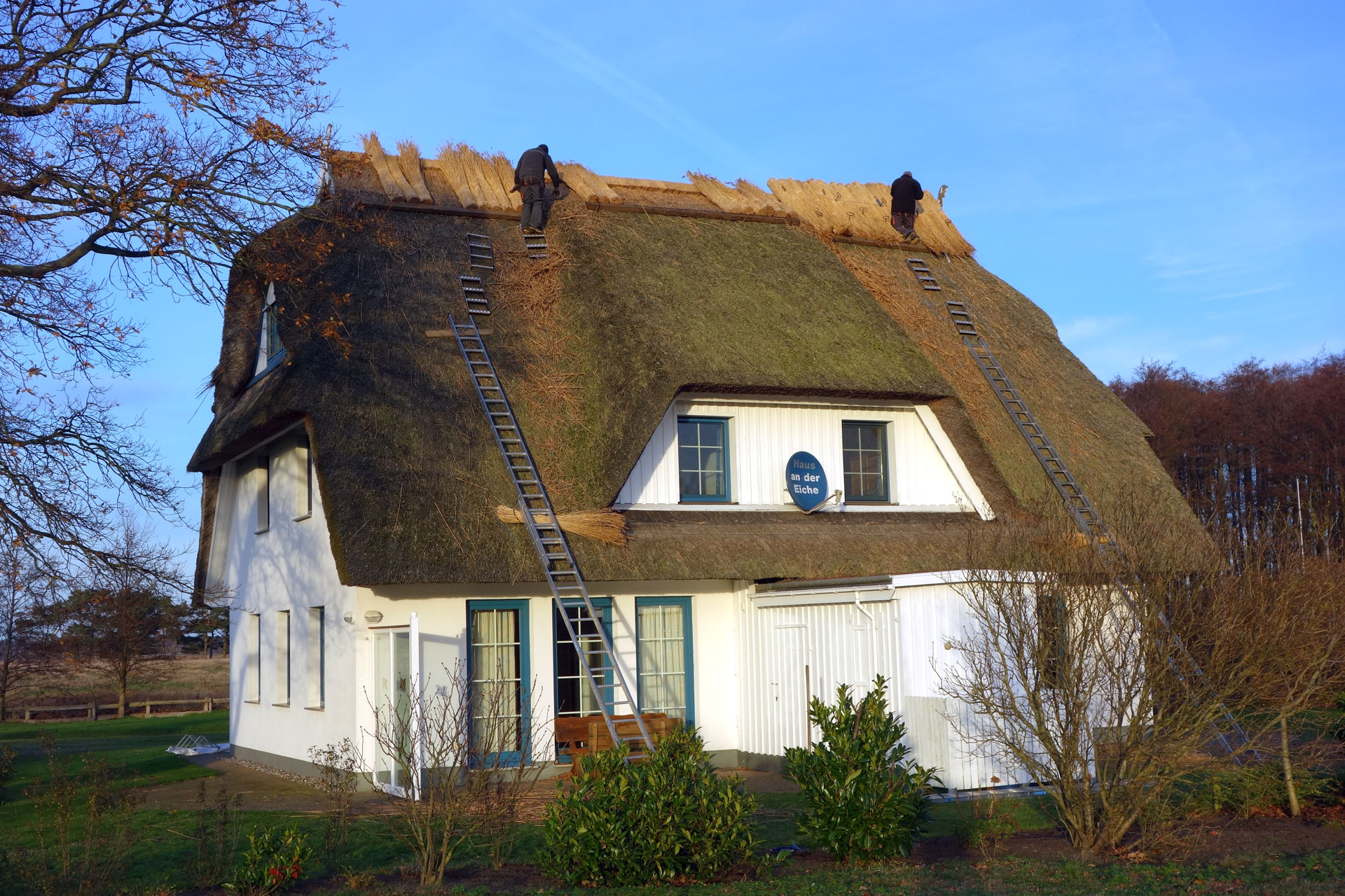 Neuer First für das RohrdachEin Reetdach oder "Rohrdach" - wie man auf dem Darß sagt - ist schön, braucht aber regelmäßig Pflege. Im Dezember 2013 haben wir den Dachfirst erneuern lassen.