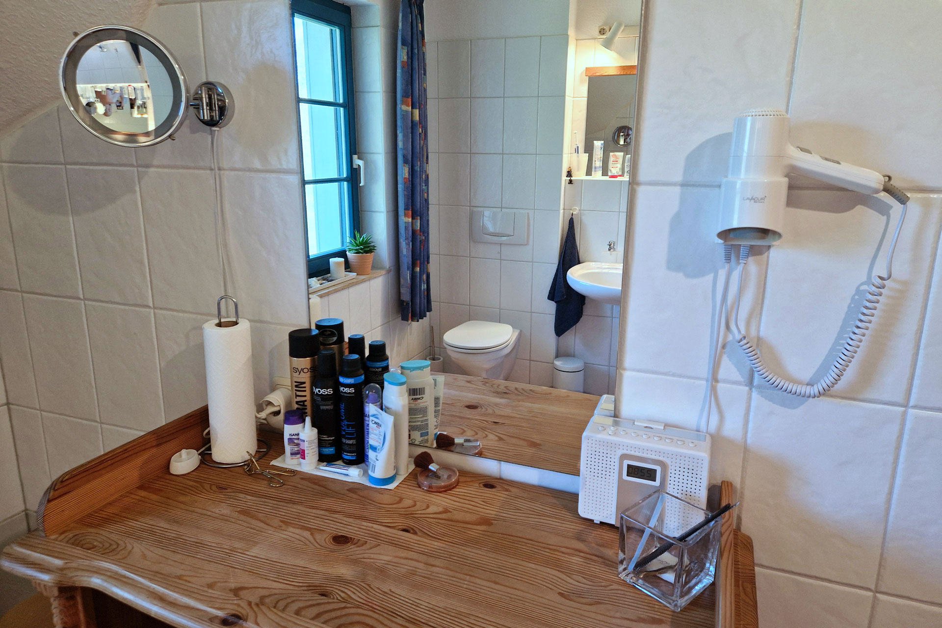 Wandföns in beiden BädernIn März/April haben wir zur bequemeren Handhabung beide Bäder mit professionellen Hotelföns ausgestattet