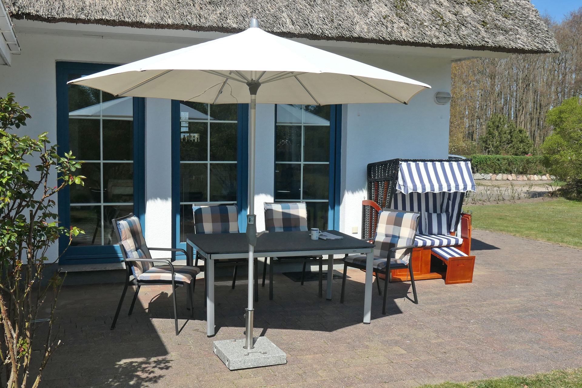 Kletterrose und SonnenschirmIm Juni 2013 haben wir an der Terrasse unsere gelbe Kletterrose gesetzt und die Terrasse mit einem neuen großen Sonnenschirm ausgestattet.