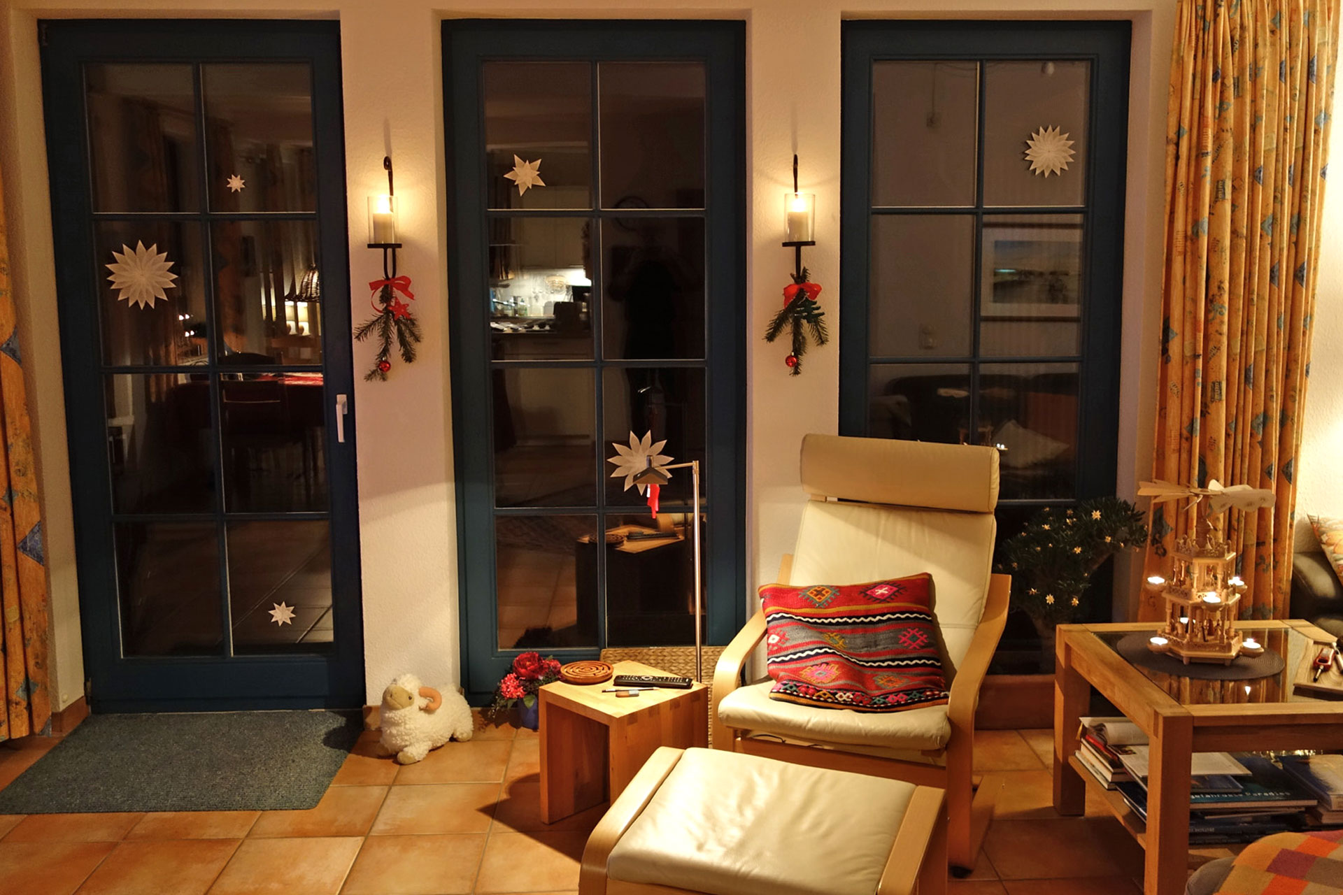 Erstes WeihnachtsfestZu unserem ersten Weihnachtsfest im Haus an der Eiche haben wir das Haus weihnachtlich geschmückt. Das haben wir auch in den nächsten Jahren so fortgesetzt, so dass sich auch unsere Weihnachtsgäste über die Festtage in einem stimmungsvollen Ambiente wohlfühlen können. |