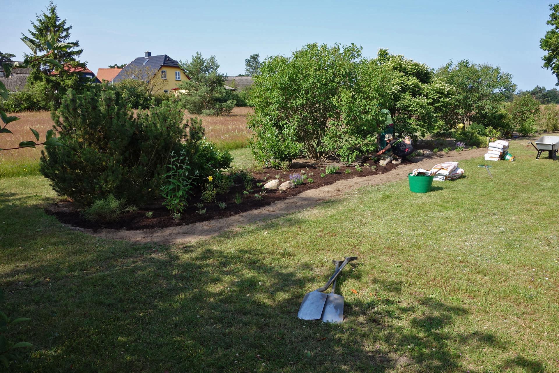 TerrassenbeetIm Juli 2014 haben wir das völlig verwilderte und verunkrautete Beet vor der Terrasse neu gestaltet und eine Tropfbewässerung installiert.