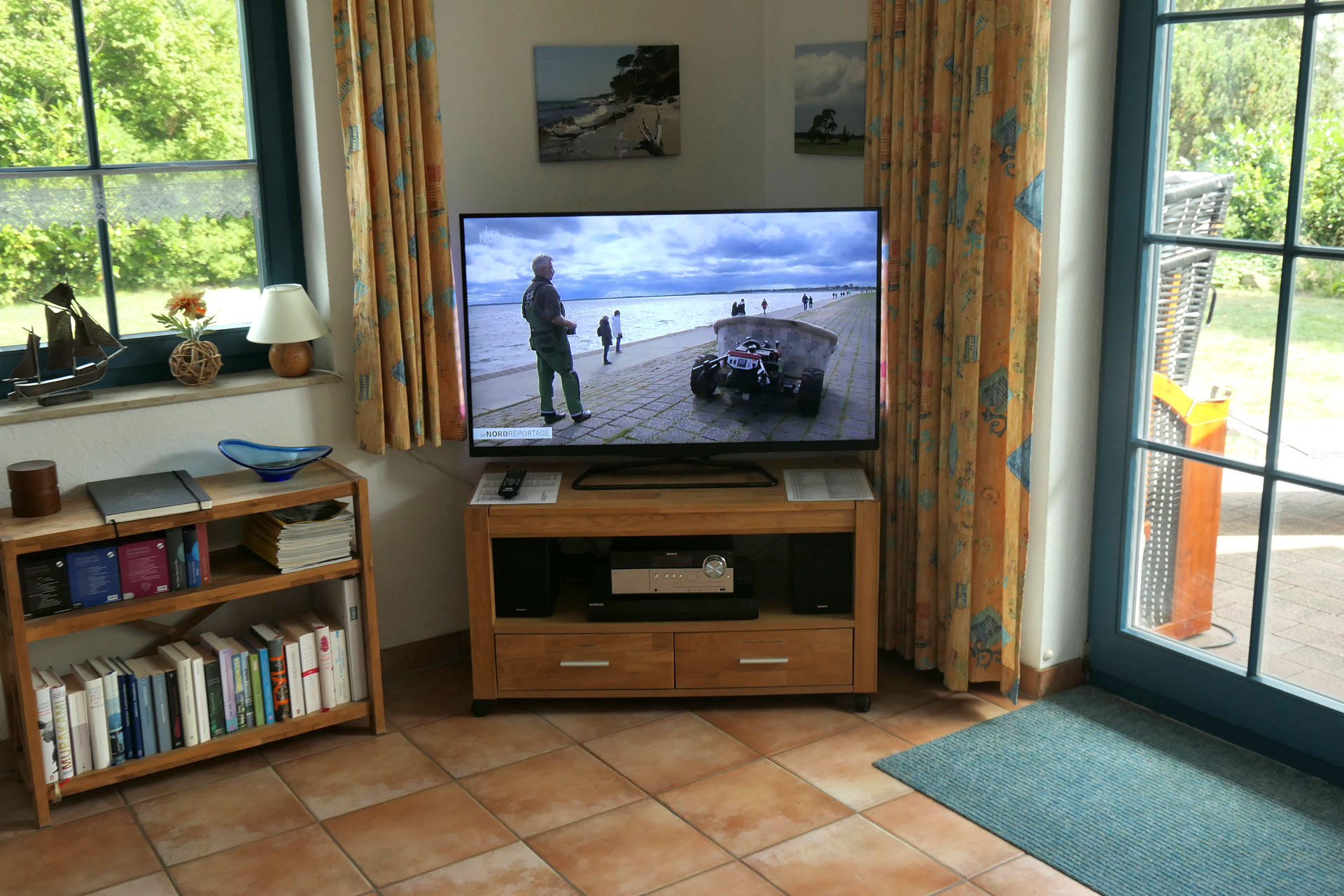 neues Hifi-SystemEin kaputter CD-Spieler führte dazu, dass wir im Januar 2023 unsere alte Hifi-Anlage ausgetauscht und auf den neusten technischen Stand gebracht haben. Damit können Sie neben dem CD-Player auch DAB+, Bluetooth, Wi-Fi, Internetradio und zahlreiche Streamingdienste nutzen. Ein Glasfaseranschlus mit 250 MBit/s und ein Wi-Fi-6-fähiger Router sorgen für einen guten Empfang. Daneben erhalten bleibt die konventionelle Videothek mit einer Sammlung von 69 (werbefreien) Filmklassikern auf HD und einem Blueray-Player. |