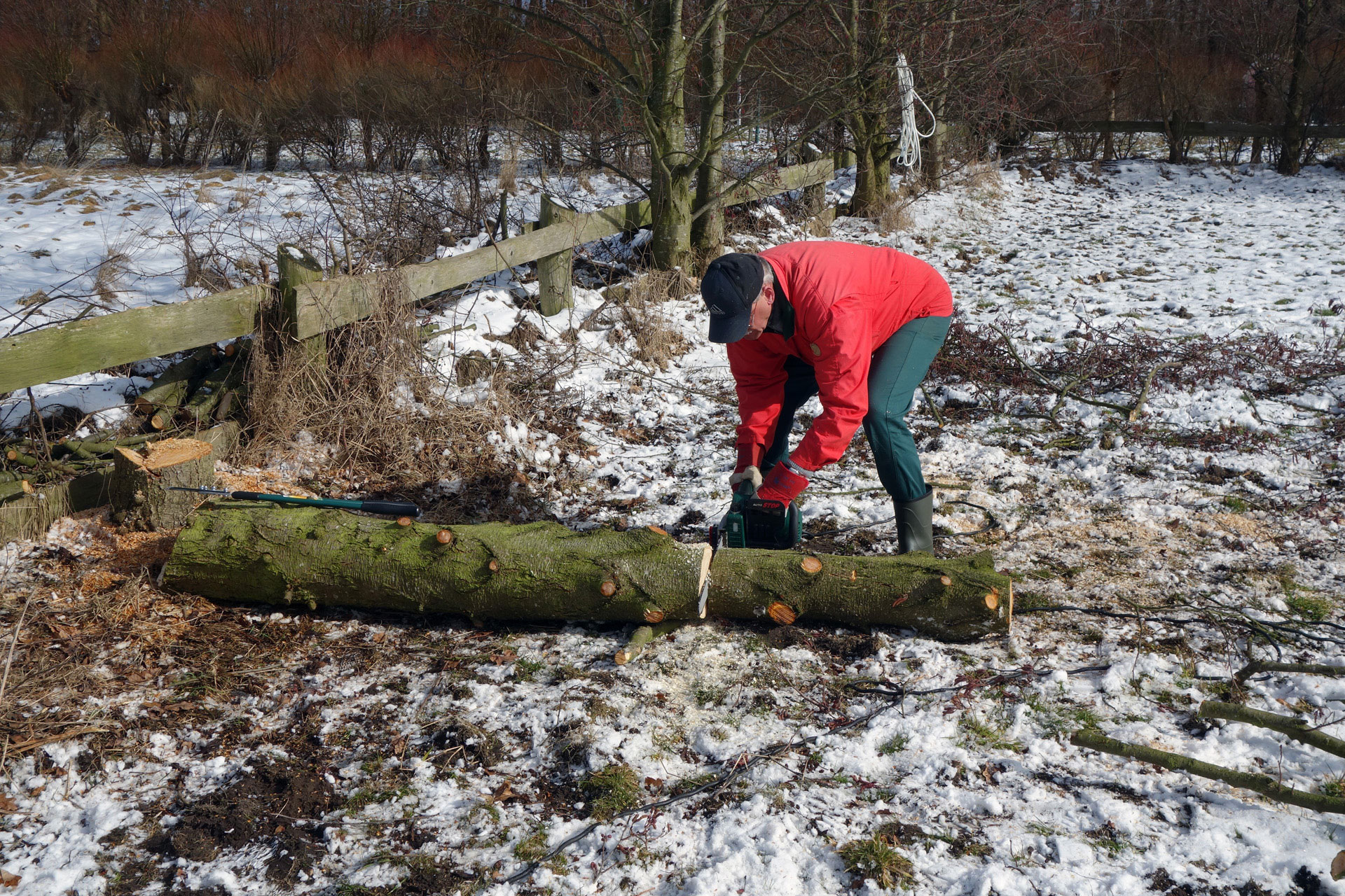 Zweites BaumfällenSeit unserer ersten Baumfällaktion im Jahr 2013 waren die verbliebenen Bäume an der Nordgrenze kräftig weiter gewachsen uns schließlich so groß und breit geworden, dass sie die Aussicht auf das Landschaftsschutzgebiet "Schwinkels Moor" im Norden wiederum stark behinderten. Im Februar 2022 haben wir deshalb zwei weitere Bäume gefällt und die freie Aussicht wiederhergestellt. |