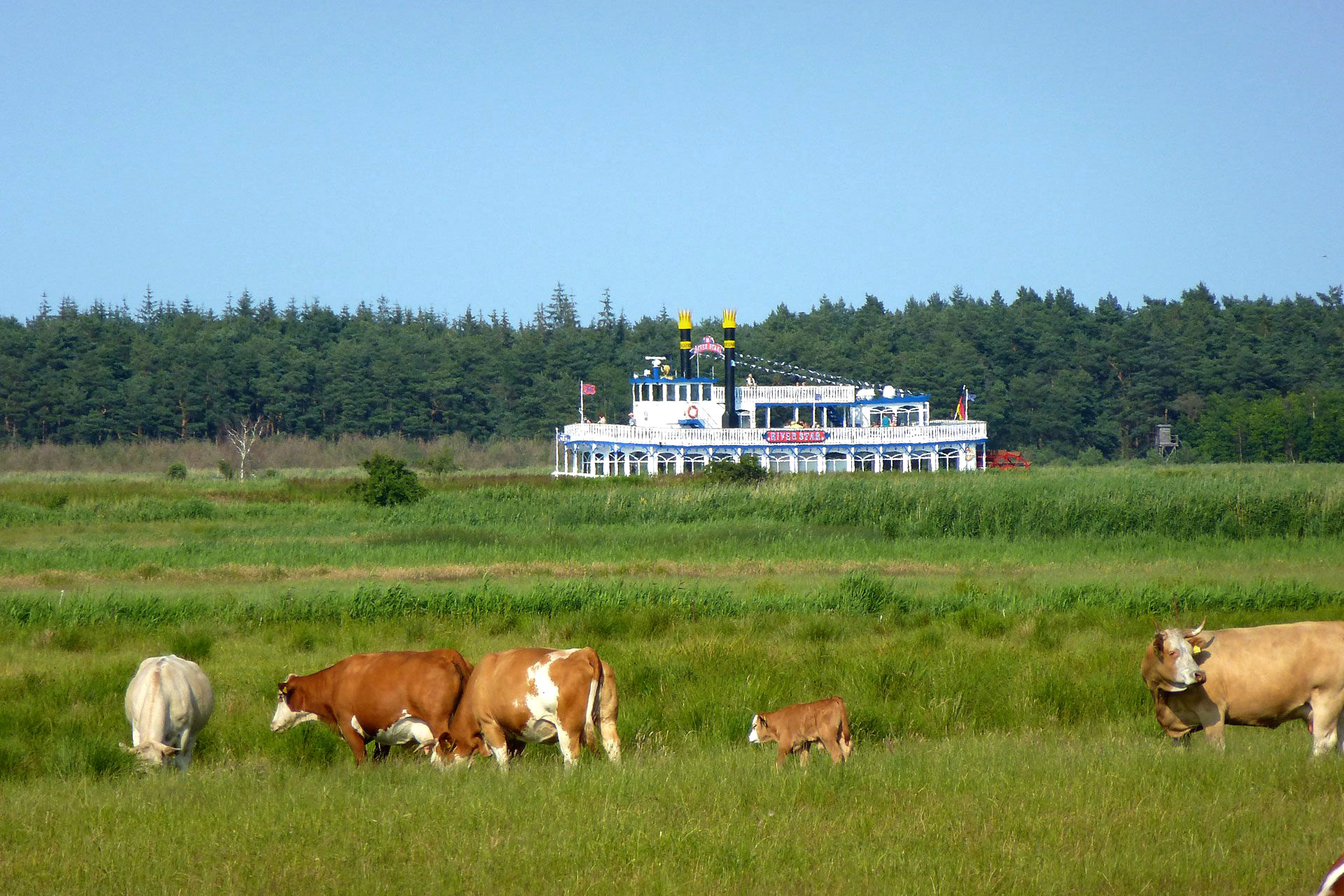 Wer zur Prerower Seebrücke will, fährt am Seedeich ca. 700 m nach links und dann nach rechts über den Damm durch den Prerowstrom 500 m bis zum Strand (ca. +2 km). Hier gibt es eine kleine „Promenade“ mit Geschäften und Gaststätten. Im Fischrestaurant Seeblick direkt an der Seebrücke hat man einen wunderbaren Ausblick über die Ostsee und auch das Essen ist gut (Reservierung empfehlenswert).
