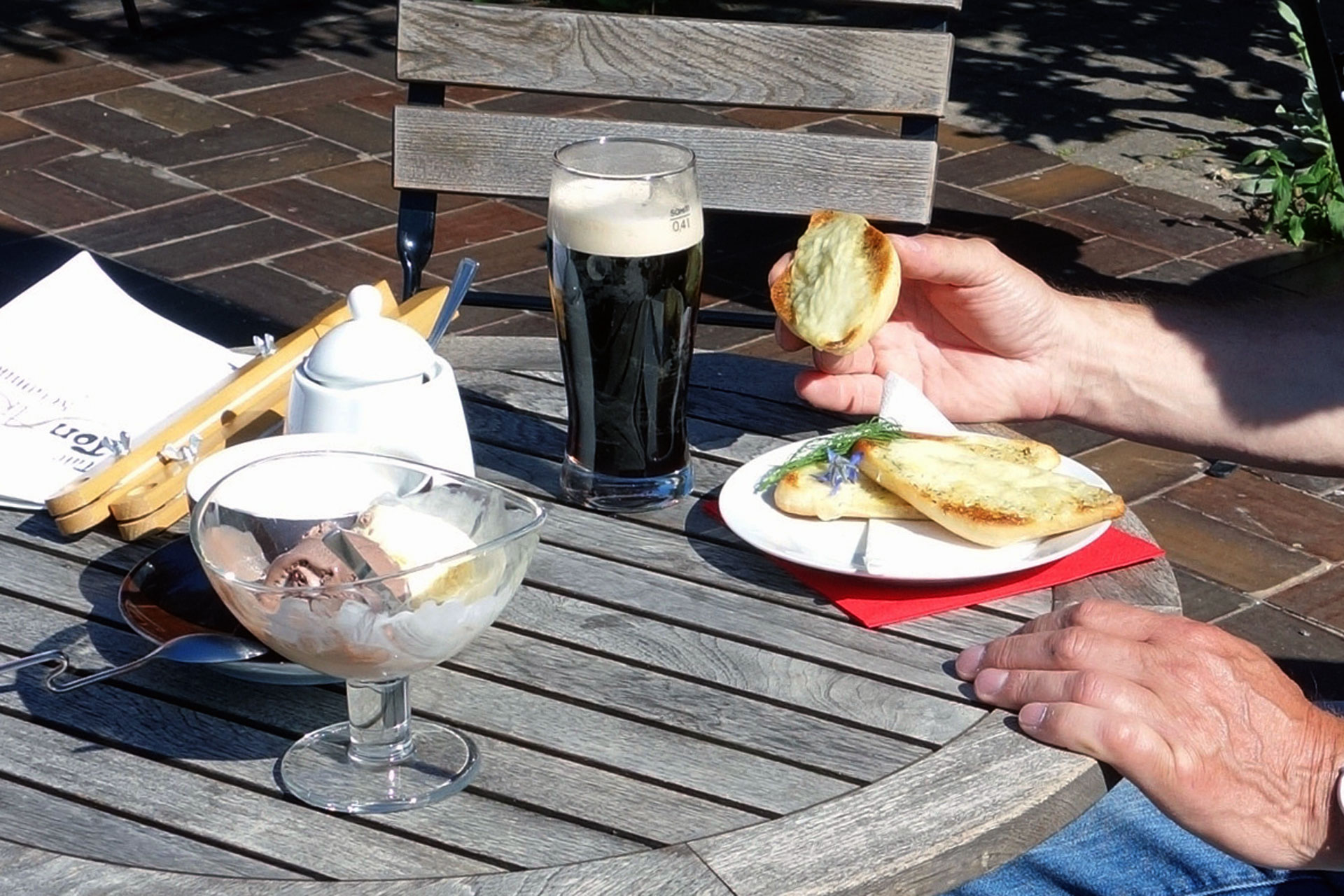 Am Nationalparkamt vorbei über die Bäderstraße hinweg geradeaus bis zur Chausseestraße; ihr nach rechts folgen am Borner Forst- und Jagdmuseum vorbei zum zum Borner Hafen mit einem Imbiss auf der Mole und Schiffsverbindungen Richtung Ahrenshoop und Bodstedt. In der Nähe gibt es mehrere weitere Einkehrmöglichkeiten, z.B. das Walfischhaus oder etwas weiter im Ort Peterssons Hof.